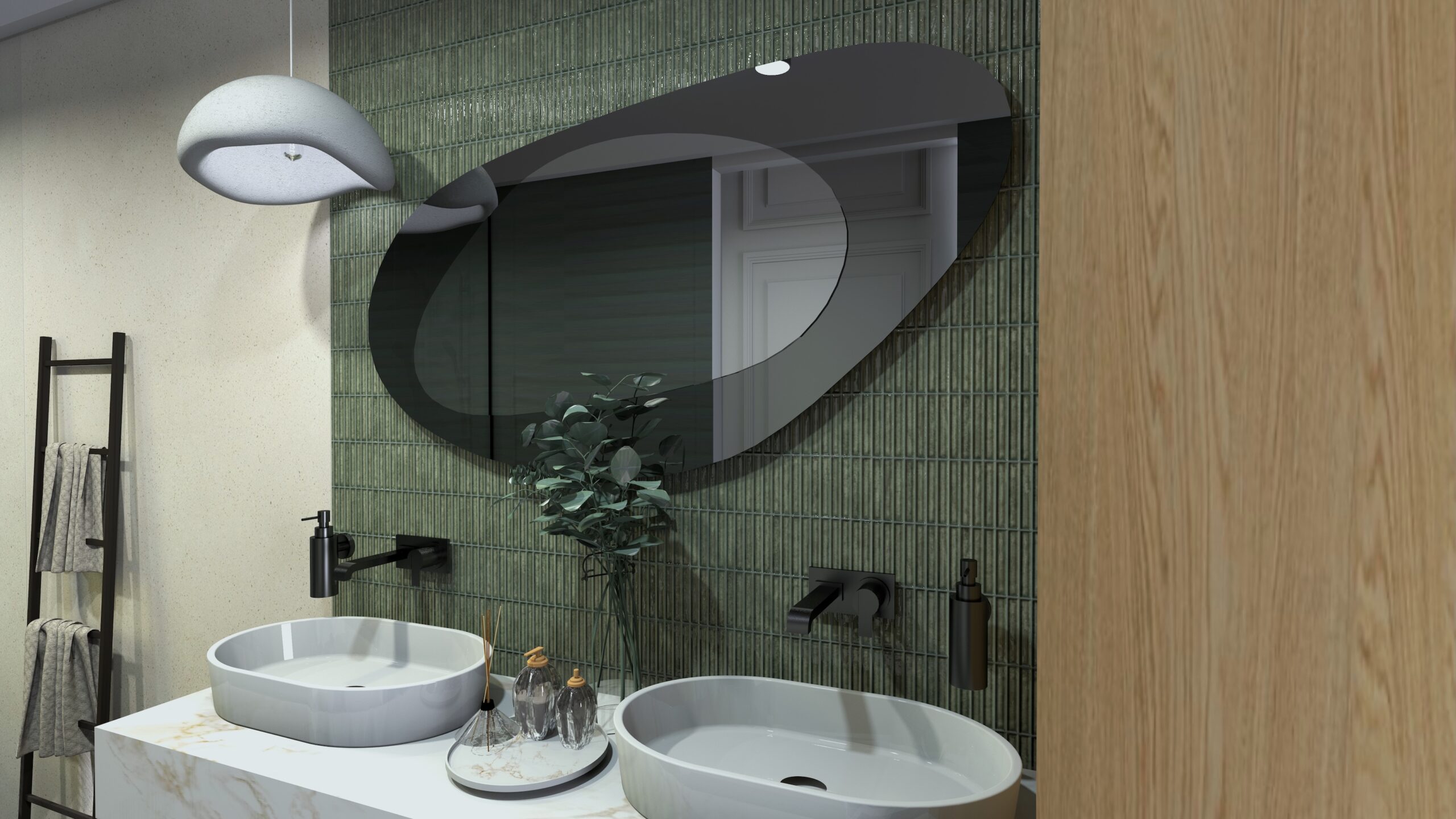 Lustro Ellise Alba ma wydłużoną, smukłą formę o elegancko zaokrąglonych krawędziach. Dzięki temu wygląda wyjątkowo lekko i harmonijnie – wprowadza do wnętrza odrobinę geometrii z kobiecym, łagodnym twistem.