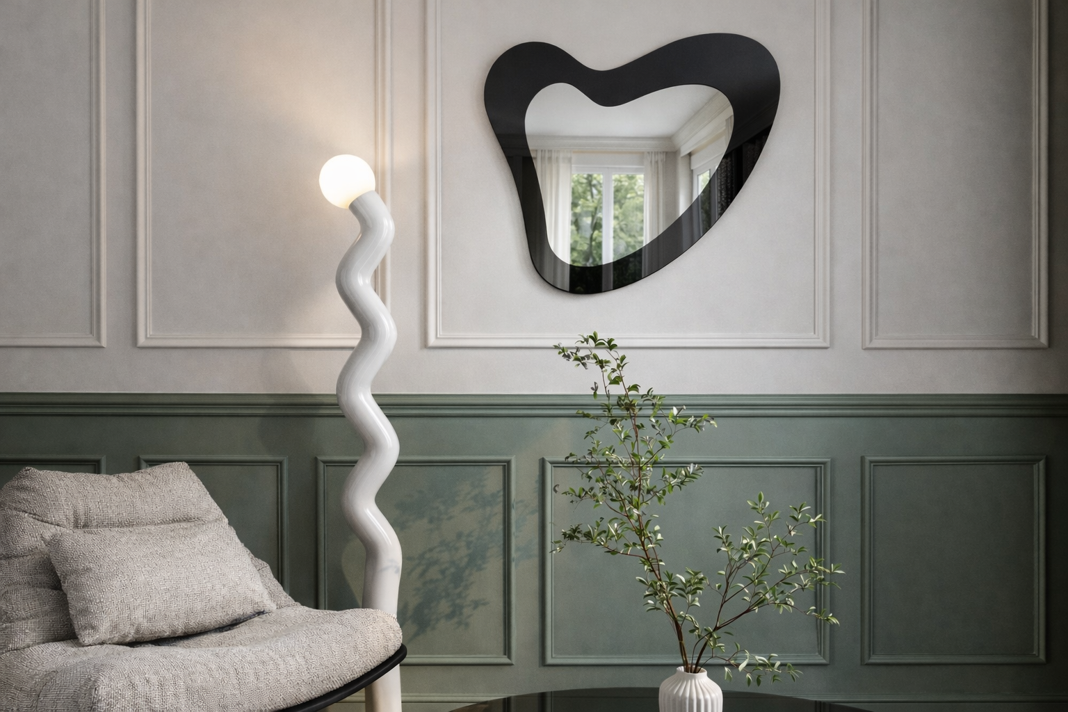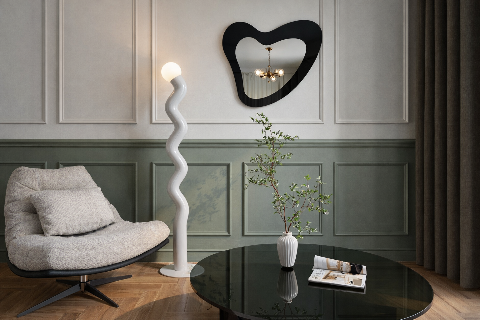 Isola Mare urzeka swoim organicznym, nieregularnym kształtem, który przypomina miękkie, morskie fale lub kształt wyspy widzianej z lotu ptaka. Ta niezwykła forma przełamuje monotonię prostych linii i klasycznych ram, stając się wyjątkową dekoracją ściany i centralnym punktem aranżacji. W lustrze odbija się światło, co dodatkowo wzmacnia wrażenie lekkości i przestronności.