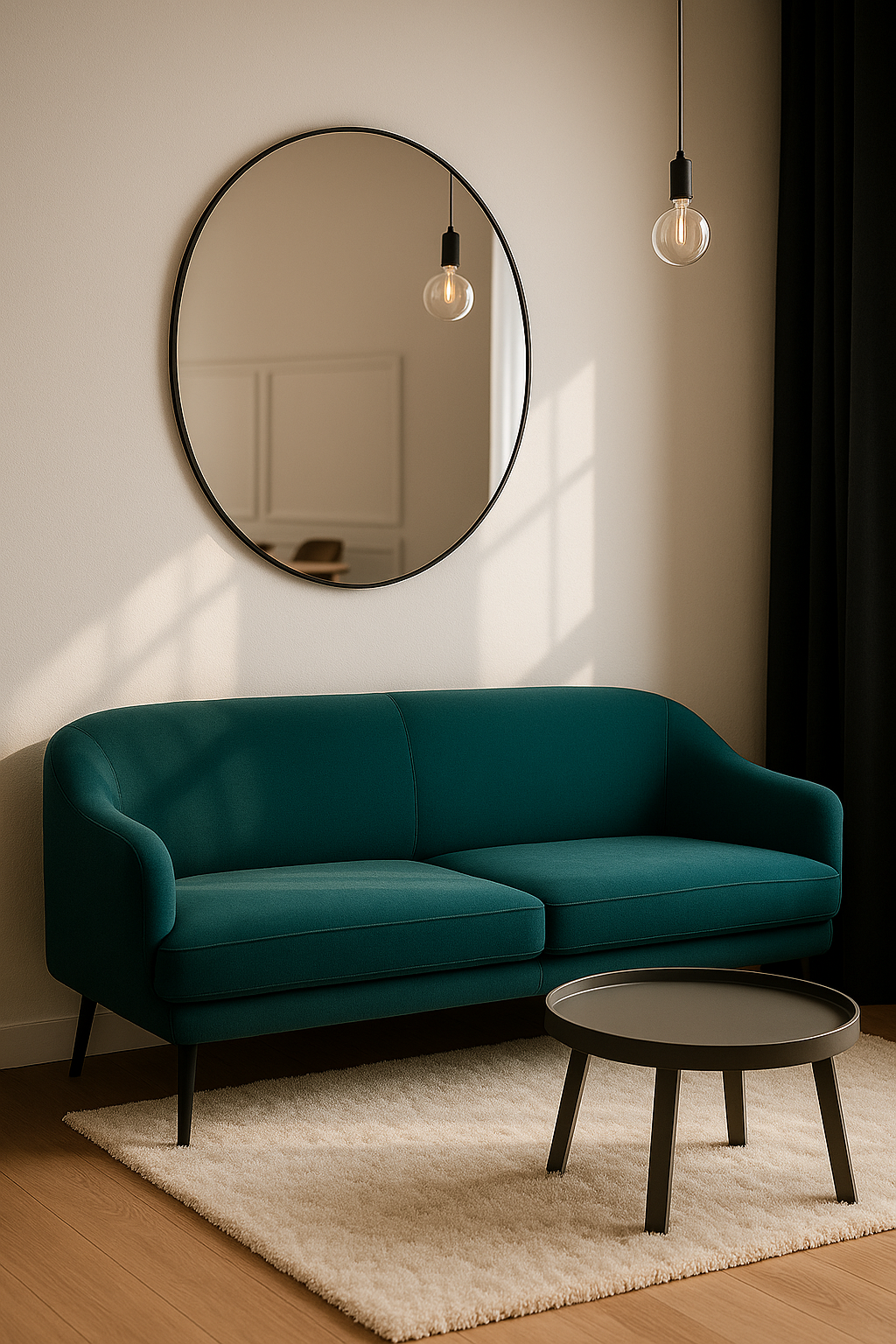 Model Sona to klasyka interpretowana na nowo. Okrągła forma o idealnie wyważonych proporcjach wprowadza do wnętrza wrażenie spokoju i symetrii. To lustro, które swoją prostotą zachwyca – bez zbędnych ozdobników, skupione na tym, co najważniejsze: na odbiciu światła i przestrzeni. Jego gładka tafla tworzy subtelny kontrapunkt dla miękkich tkanin, naturalnego drewna czy surowych powierzchni betonu.