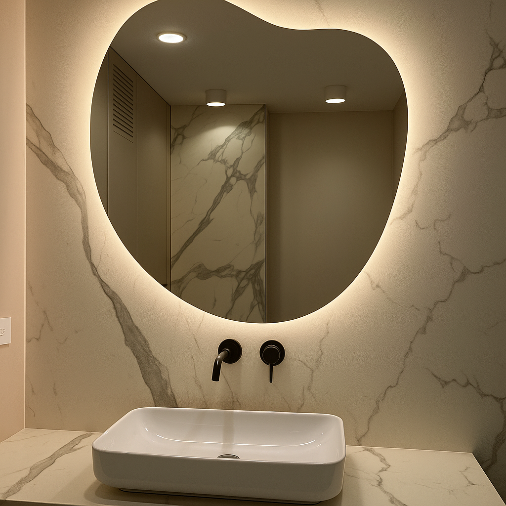 Model Fiora emanuje łagodnością i kobiecą subtelnością. Jej miękko zarysowana tafla przypomina płatek kwiatu otulony światłem. To połączenie delikatnej formy i nowoczesnej technologii, które nadaje wnętrzu wrażenie ciepła i naturalnej harmonii.