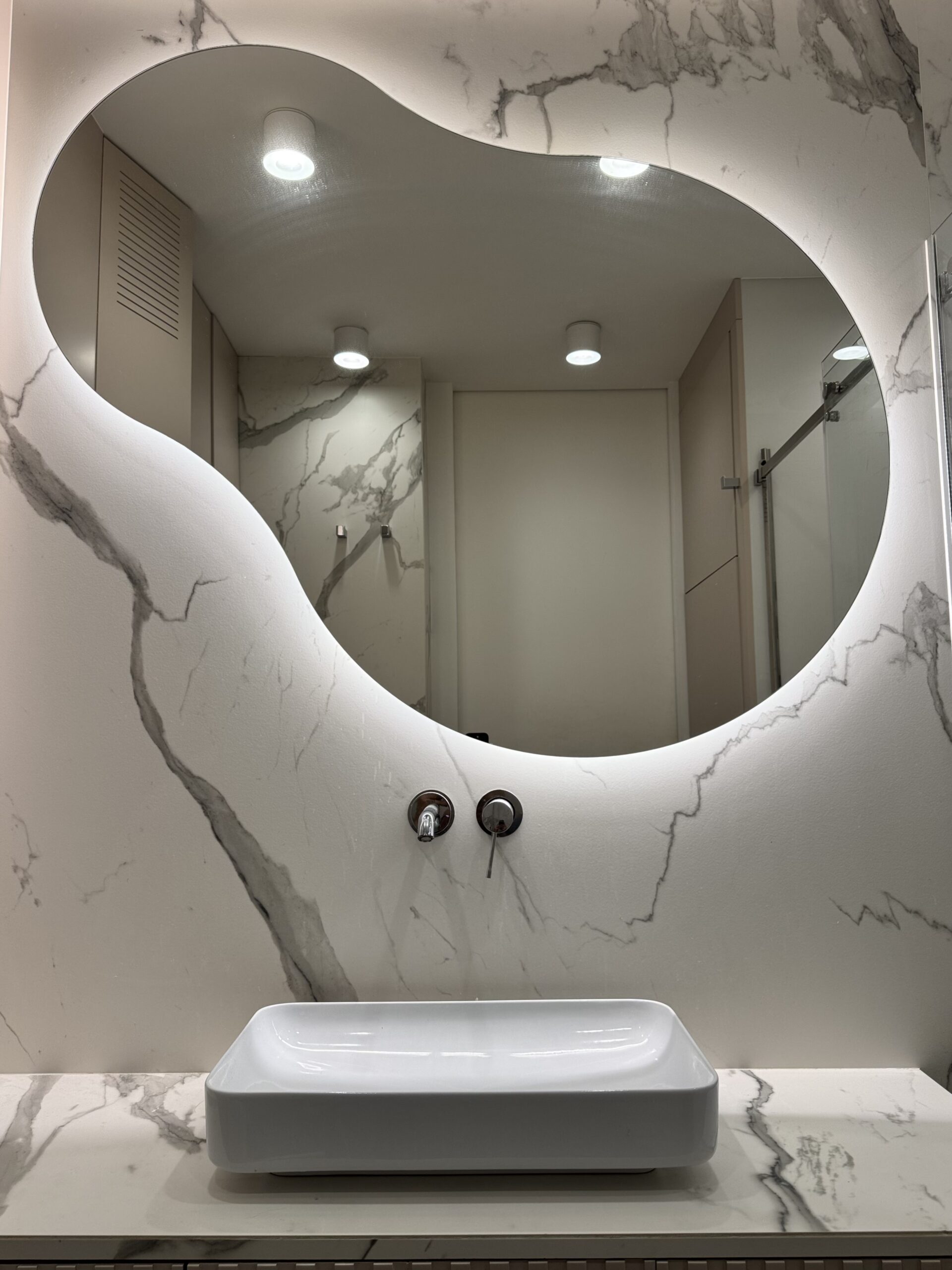 Delikatna poświata, subtelne linie i idealnie gładka tafla tworzą wrażenie przestrzeni, w której można się zatrzymać.