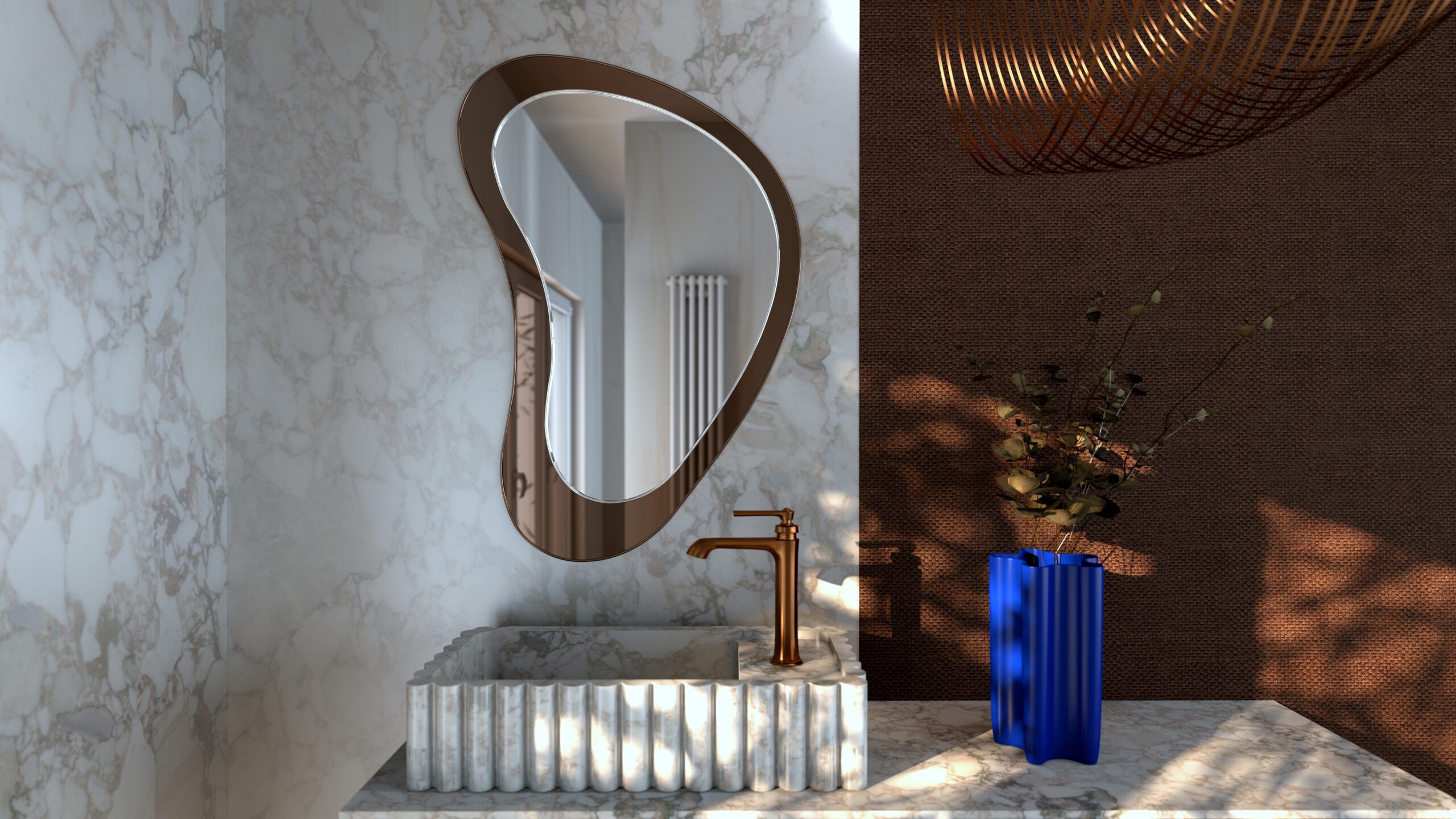 Vento Foglia to interpretacja liścia unoszonego przez wiatr – subtelna, falująca forma sprawia, że lustro wygląda jak zatrzymany w ruchu fragment natury. Nieregularny kontur nadaje mu artystycznego charakteru, a jednocześnie wnosi do wnętrza wrażenie lekkości i harmonii. To model, który łączy w sobie dynamikę i spokój, będąc wizualnym zapisem tańca wiatru z naturą.